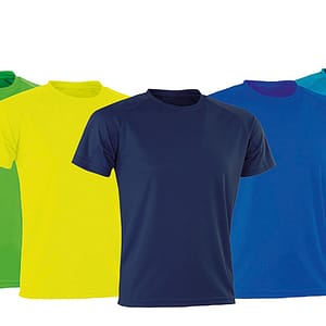 Ležérní střih, Raglán krátký rukáv, prodyšný materiál, ofsetové ploché švy na ramenou a průramcích, streč High Tech, rychleschnoucí, neutrální velikostní štítek.